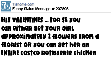 X says HIS VALENTINES ... For $5 you can either get your girl approximately 2 flowers from a florist OR you can get her an ENTIRE costco rotisserie chicken