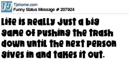 X says Life is really just a big game of pushing the trash down until the next person gives in and takes it out.