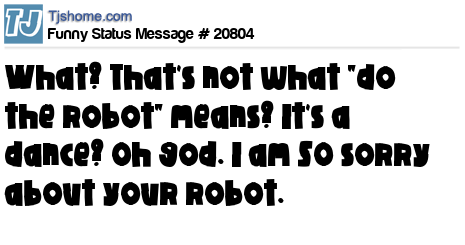 X What? That's not what "do the robot" means? It's a dance? Oh god. I am SO sorry about your robot.