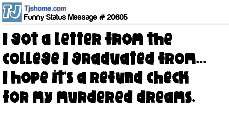 X I got a letter from the college I graduated from... I hope it's a refund check for my murdered dreams.