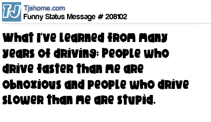 X says What I've learned from many years of driving: People who drive faster than me are obnoxious and people who drive slower than me are stupid.