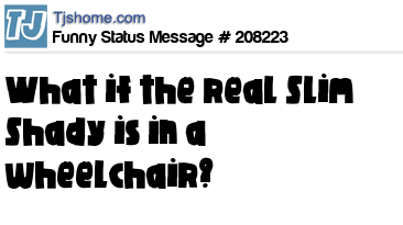 - # 58951 Three resons to stand up. 1) to go bathroom 2) to get the T.V remote and 3) because your the real slim shady.
