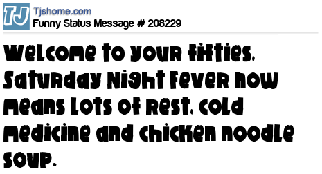 X says Welcome to your fifties, Saturday Night Fever now means lots of rest, cold medicine and chicken noodle soup.