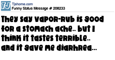 X says They say vapor-rub is good for a stomach ache.. but I think it tastes terrible.. and it gave me diarhrea...
