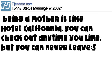 X is being a mother is like Hotel California, you can check out anytime you like, but you can never leave:S