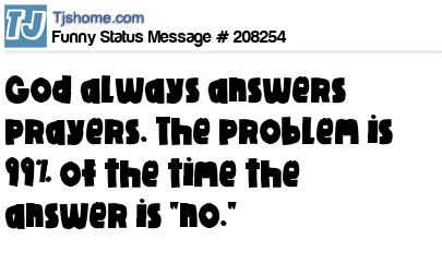 X says God always answers prayers. The problem is 99% of the time the answer is "no."