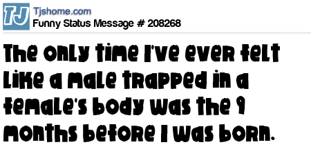 X says The only time I've ever felt like a male trapped in a female's body was the 9 months before I was born.