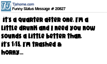 - # 34442 ♫♪ It's a quarter after one; I'm a little drunk and I need you now....♪♫ Sounds just a tad better than it's 1:15, I'm Trashed & Horny let's get busy...