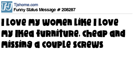 X says I love my women like I love my Ikea furniture, cheap and missing a couple screws