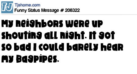 X says My neighbors were up shouting all night. It got so bad I could barely hear my Bagpipes.
