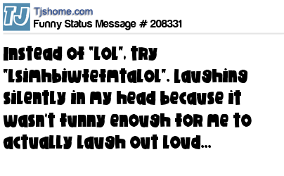 X says Instead of "lol", try "lsimhbiwfefmtalol". Laughing silently in my head because it wasn't funny enough for me to actually laugh out loud...
