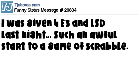 - # 30707 had four E's and LSD last night, Such an awful start to a game of scrabble!!