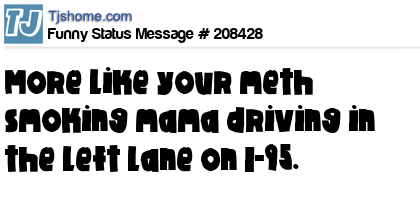 X says More like your meth smoking mama driving in the left lane on I-95.