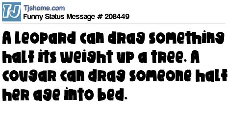X says A leopard can drag something half its weight up a tree. A cougar can drag someone half her age into bed.