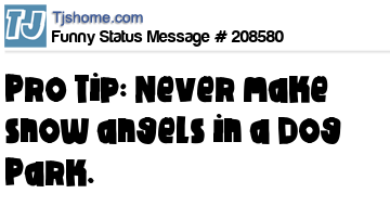 X says Pro Tip: Never make snow angels in a Dog Park.