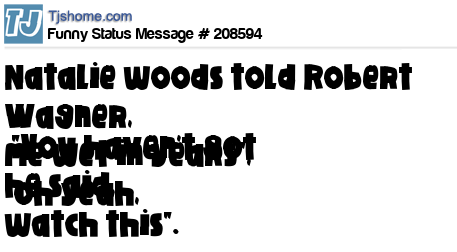 - # 183558 Beginning to question my plans to go yachting with Robert Wagner this weekend.