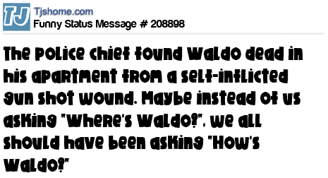 X is The police chief found Waldo dead in his apartment from a self-inflicted gun shot wound. Maybe instead of us asking "Where's Waldo?", we all should have been asking "How's Waldo?"