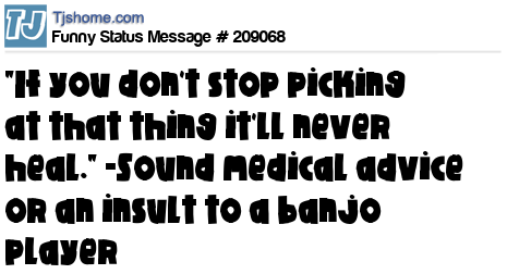 - # 203463 "If you don't stop picking at that thing it will never heal." -Sound medical advice or an insult to a banjo player