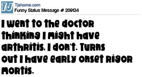 X says I went to the doctor thinking I might have arthritis, I don't. Turns out I have early onset rigor mortis.