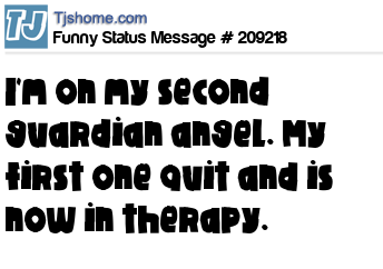 - # 174449 I'm pretty sure my guardian angel is in therapy for PTSD.