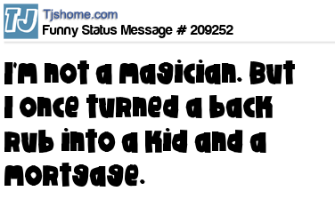 X is I'm not a magician. But I once turned a back rub into a kid and a mortgage.