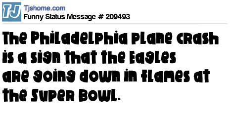 X says The Philadelphia plane crash is a sign that the Eagles are going down in flames at the Super Bowl.