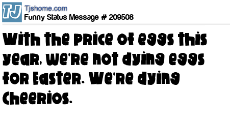 X With the price of eggs this year, we're not dying eggs for Easter. We're dying Cheerios.