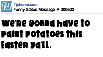 X says We're gonna have to paint potatoes this Easter ya'll.