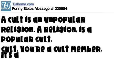 X is A cult is an unpopular religion. A religion, is a popular cult.