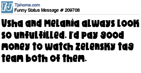 X is Usha and Melania always look so unfulfilled. I'd pay good money to watch Zelensky tag team both of them.