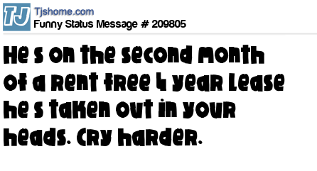 X is He’s on the second month of a rent free 4 year lease he’s taken out in your heads. Cry harder.