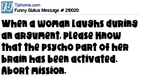 - # 205398 When a woman laughs during an argument, the psycho part of her brain has just been activated. Abort mission.