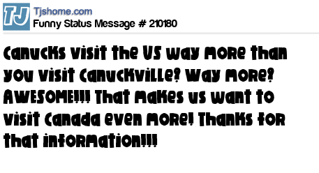 - # 210174 Canucks visit the US way more than we visit Canuckville. Way more.