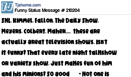 X is SNL, Kimmel, Fallon, The Daily Show, Meyers, Colbert, Maher.... these are actually great television shows. Isn't it funny? That every late night talkshow or variety show, just makes fun of him and his minions? SO good 🤠Not one is on his side.