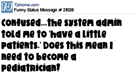 X is confused...the system admin told me to 'have a little patients.' Does this mean I need to become a pediatrician?