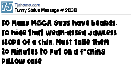 X is SO many M^GA guys have beards. To hide that weak-assed jawless slope of a chin. Must take them 20 minutes to put on a f*cking pillow case 😂