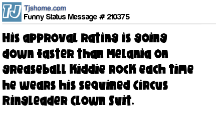 X is His approval rating is going down faster than Melania on greaseball kiddie rock each time he wears his sequined Circus Ringleader Clown Suit.