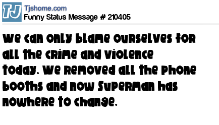 - # 156099 We can only blame ourselves for all the crime and violence today, we removed all the phone booths and now Superman has nowhere to change...