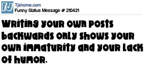 X is Writing your own posts backwards only shows your own immaturity and your lack of humor.
