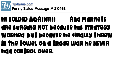 X is HE FOLDED AGAIN!!!! 😂 And markets are surging NOT because his strategy worked, but because he finally threw in the towel on a trade war he NEVER had control over.