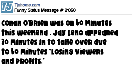 X Conan O'Brien was on 60 Minutes this weekend . Jay Leno appeared 30 minutes in to take over due to 60 minutes "losing viewers and profits."