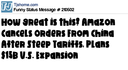 X says How great is this? Amazon Cancels Orders From China After Steep Tariffs, Plans $15B U.S. Expansion