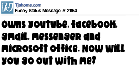 X says owns youtube, facebook, gmail, messenger and microsoft office. Now will you go out with me?