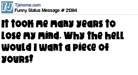 X It took me many years to lose my mind. Why the hell would I want a piece of yours?