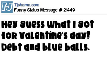X is Hey guess what I got for Valentine's day? Debt and blue balls.