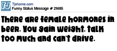 - # 125992 Apparently beer contains female hormones. After you drink enough you can neither drive nor shut the hell up lol