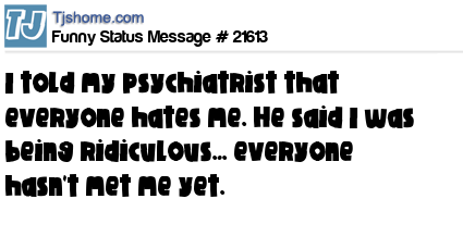 - # 22839 I told my psychiatrist that everyone hates me. He said I was being ridiculous - everyone hasn't met me yet...