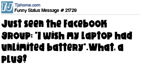 X Just seen the Facebook group: "I wish my laptop had unlimited battery".What, a plug?
