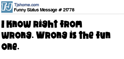 X says I know right from wrong. Wrong is the fun one.