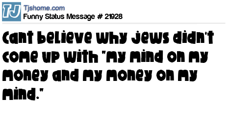 X  Cant believe why jews didn't come up with "my mind on my money and my money on my mind."